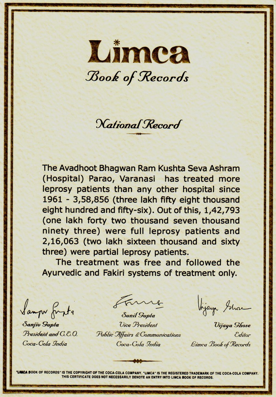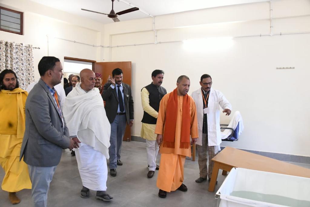 The Samooh has made marvellous contribution in the treatment and rehabilitation of leprosy patients and its ‘Avadhoot Bhagwan Ram Kustha Sewa Ashram’ has been certified by several global agencies such as The Guinness Book and Limka Book. There is a big list of awards offered to this institution. When Aghoreshwar Bhagwan Ram left His mortal body on 29th November 1992, His Samadhi was made at the bank of Ganga 1 Km away from the Head Office of the Samooh in a very serene environment. An old age home (Aghoreshwar Bhagwan Ram Vriddh Ashram) is also made near this place. Considering the need of elaborating its existing ayurvedic and other health services, the Samooh has recently started a big health centre ‘Aghoreshwar Bhagwan Ram Yog avam Prakritik Chikitsa Anusandhan Kendra’ in the premises of Aghoreshwar Bhagwan Ram Mahavibhuti Sthal. It was inaugurated by the hon’ble Chief Minister Yogi Adityanath ji on 12th January 2023. So far this unique centre has facilities and dedicated staff for Shirodhara, Abhyangam, Panchkarma, hot water therapy, osteopathy and homoeopathic services.