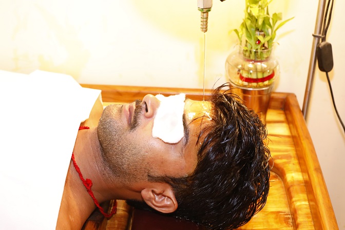 The person receiving the treatment lies down on a comfortable surface, usually a massage table, in a quiet and calm environment. The therapist prepares the oil or liquid that will be used for the treatment. The choice of liquid may vary depending on the individual's Ayurvedic constitution (dosha) and specific health concerns. Common liquids used include herbal oils, coconut water, milk, buttermilk, or even plain water.